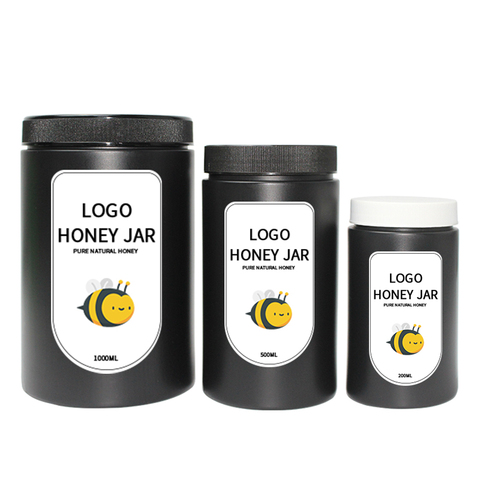 Wholesale 200g 500g 1000g Black Bottle Material Food Grade Honey Container HDPE Honey Plastic Jar